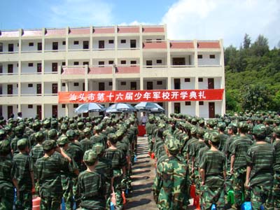市直人武部政委、汕头市少年军校名誉政委叶朝南、团市委副书记、第十六届少年军校校长王江锋、团市委学少部部长、第十六届少年军校副校长陈朝华、汕头市教育局体卫艺科科长、汕头市少年军校副政委黄义晟、汕头市青少年活动中心主任、汕头市少年军校副政委林子雄、汕头警备区教导队队长、第十六届少年军校总教官张军少校以及汕头市青少年活动中心副主任李春尔等有关领导出席了7月12日上午的开学典礼。