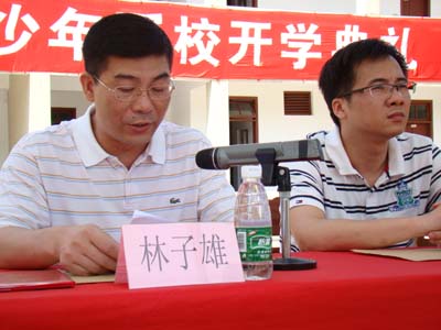 汕头市青少年活动中心主任、汕头市少年军校副政委林子雄主持开学典礼