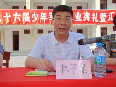 汕头市青少年活动中心主任、汕头市第十六届少年军校副政委林子雄作汕头市第十六届少年军校第2期的工作总结