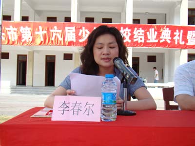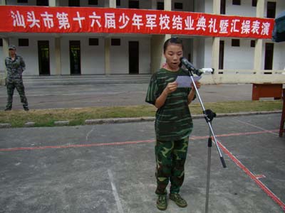 汕头市青少年活动中心副主任李春尔主持第十六届少年军校第2期结业典礼
