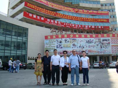 市青少年活动中心主任林子雄(左三)、周勤龄女士(右三)、让-贝尔纳·惠普曼(右二)、市青少年活动中心副主任林纯玲(右一)等合影留念