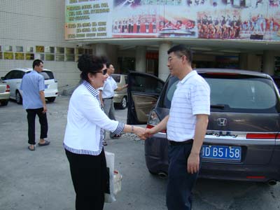 市青少年活动中心主任林子雄迎接周勤龄女士的到来