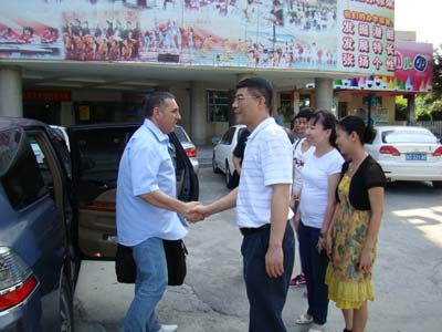 市青少年活动中心主任林子雄迎接让-贝尔纳·惠普曼的到来