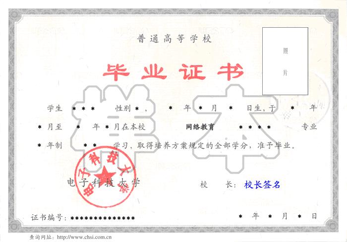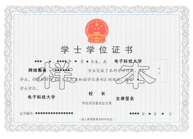 我校网络教育学生在规定时间内完成教学计划规定的全部课程学习,考试合格,完成毕业设计(论文),并通过全国现代远程教育试点学校网络教育公共课统一考试(专升本)者(专升本学生要参加计算机和英语统考,在当地的电大参加考试),学制期满,由电子科技大学统一颁发国家承认学历的毕业证书,注明“网络教育”字样,并实行电子注册。符合学位条件的可申请授予成人高等教育学士学位。