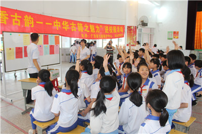 为进一步弘扬中华优秀传统文化,推动中华优秀传统文化进校园,凝聚社会专业力量积极参与农村留守儿童关爱保护工作。6月6日下午,由团市委、市教育局、市少工委指导,市少工委办公室联合市青少年活动中心、市救助管理站、特区青年报等单位开展的2019年“流动少年宫”中华优秀传统文化公益课堂进校园暨“关注留守岁月 照亮留守天空”关爱留守儿童志愿服务活动走进澄海区隆城报本小学。团市委学少部负责人张泽霞、市青少年活动中心副主任李春尔、市图书馆副馆长王缨缨以及来自我市青少年活动中心、市图书馆、市阳光热线等多条战线30多名专业志愿者和隆城报本小学近400名学生参加了活动。