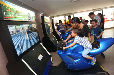 在市青少年活动中心的广场外、大楼内开展的科技主题游园系列活动,给全市青少年儿童带来了一个充满快乐、富有童趣、科技动感的主题乐园,建造一个科技儿童世界。让孩子们绽开幸福的笑脸,这是我们的心愿,更是我们城市最美的风景。参与现场科技项目还能收获一份小礼物就足以开心一整个上午,看海陆空模型展、科幻电影展播,学DIY科技小制作、3D打印、漆艺篆刻、AR体验式安全教育、创客机器人研学课程现场体验,玩RC遥控车趣味竞速赛、交通安全体验、创客机器人搭建体验、猜科技知识灯谜台、科技知识抢答擂台,没有烦恼还能尽情玩耍科技项目又有礼物领取的日子真好,那些纯真的笑容,将永远留在这片六一的天空下。