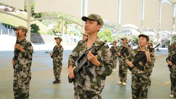 少年军校,承载着教育引导少年儿童了解国防知识、增强国防观念,全面提高综合素质的光荣使命。在课程设计上,除按常规进行队列、旗语、军体拳训练、站岗放哨以及野营拉练等传统训练课程外,还有攀岩挑战、禁毒教育、爱国主义露天电影、真人CS野战对抗、心理拓展训练、战场救护、三防训练(防火、防地、防溺水)等知识的培训,少年军校作为加强国防教育的有效载体,为我市广大青少年提供了锻炼和实践的平台,对引导青少年增强国防意识,促进青少年全面发展具有不可替代的重要作用。