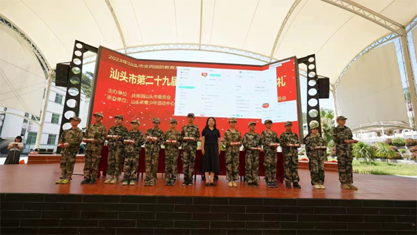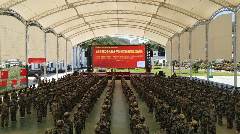 7月14日上午,汕头市第二十九届少年军校举行第一期学员汇操表演暨结业典礼。团市委、市少工委、市青少年活动中心、汕头团校等单位有关同志参加相关活动,见证400名学员历经5天全封闭式军事训练后的蜕变与成长。