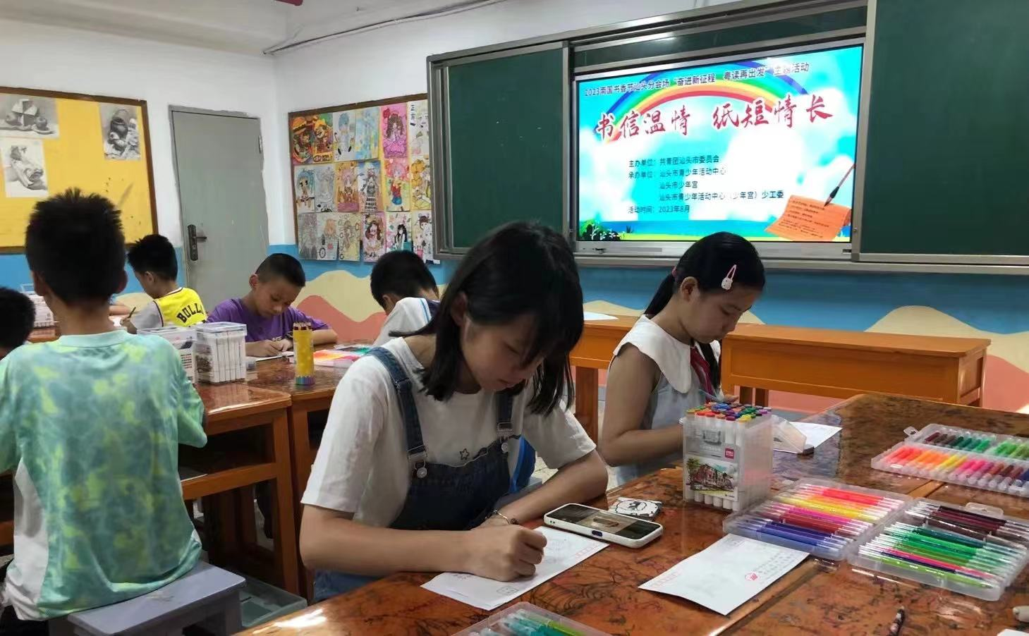 又是一年书香节!奋进新征程,粤读再出发。为贯彻落实习近平总书记关于推动全民阅读的重要指示精神,组织青少年积极参与“书香岭南”全民阅读活动,营造爱读书、读好书、善读书的浓厚氛围,帮助青少年在阅读活动中培根铸魂、启智增慧。8月18日,由共青团汕头市委员会主办,汕头市青少年活动中心、汕头市少年宫、汕头市青少年活动中心(少年宫)少工委承办的2023南国书香节汕头分会场“奋进新征程 粤读再出发”为主题的“书信温情 纸短情长”创作活动在汕头市青少年活动中心举办,吸引一批青少年踊跃参与。