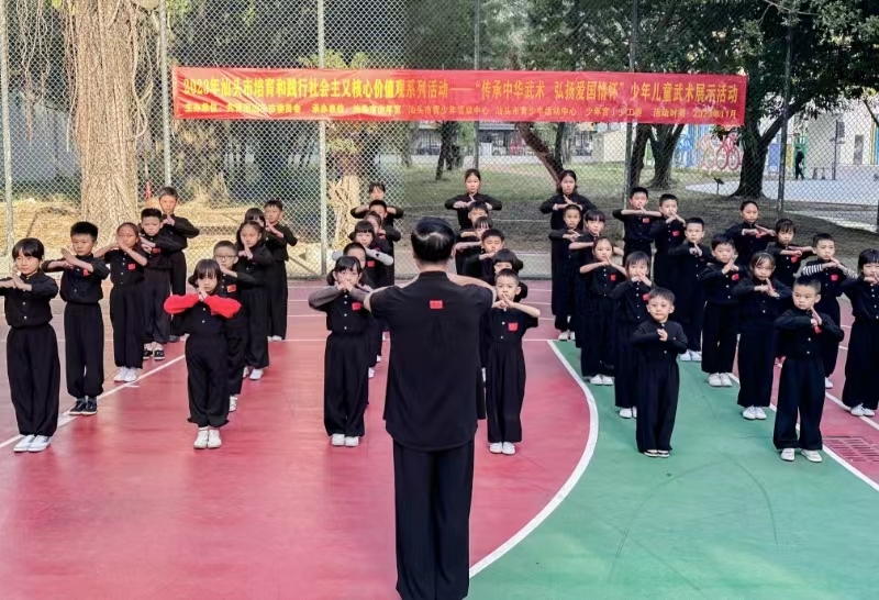 武术在我国有着悠久的历史,其作为中华传统文化的精髓,不仅能强身健体,还能锻炼心智。为进一步弘扬中华民族传统文化,培养少年儿童对传统武术的兴趣,激发爱国情怀,引领少年儿童自觉践行社会主义核心价值观,由共青团汕头市委员会主办,汕头市少年宫 、汕头市青少年活动中心、汕头市青少年活动中心(少年宫)少工委承办的2023年汕头市培育和践行社会主义核心价值观系列活动——“传承中华武术 弘扬爱国情怀”少年儿童武术展示活动于11月19日下午在汕头市青少年活动中心举办。