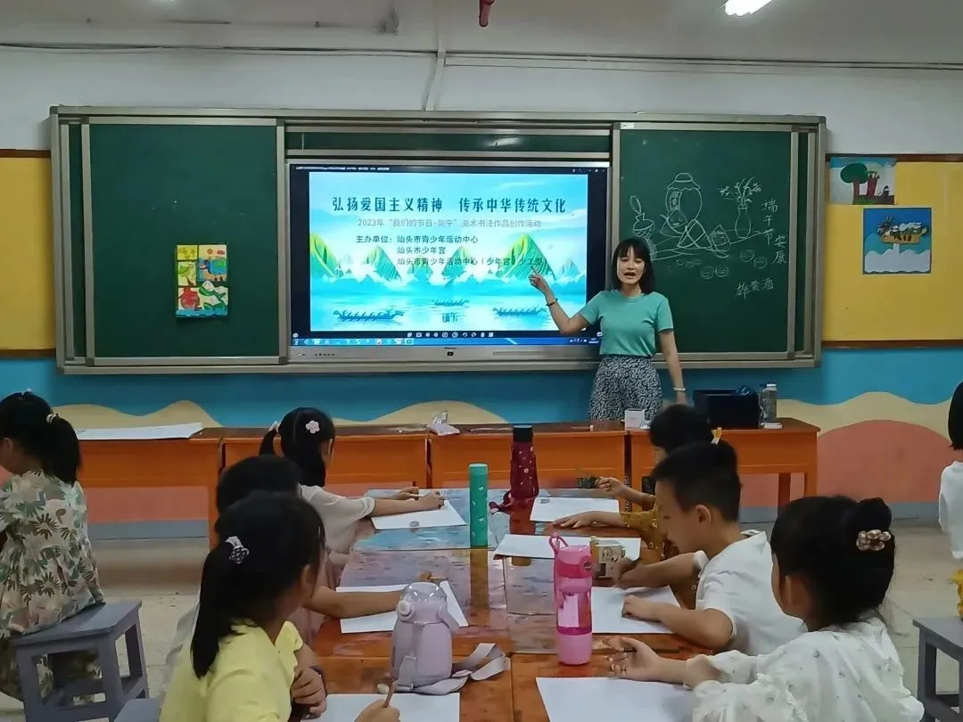 2023年,我们在“百千万工程”的旗帜引领下,着眼于乡村儿童校外素养教育,以“流动少年宫”“智能科技进校园”“篆刻艺术进校园”等活动形式,面向乡村学校开展公益送教下乡活动,让更多乡村孩子在家门口享受到校外教育的优质特色资源,助推“双减”工作落地落实。与此同时,我们以艺术采风为活动载体,通过开展“绿美海岛 童绘家园”“走进艺术田园,绘就百千万风采”等研学活动,助力“百千万工程”和绿美汕头生态建设。