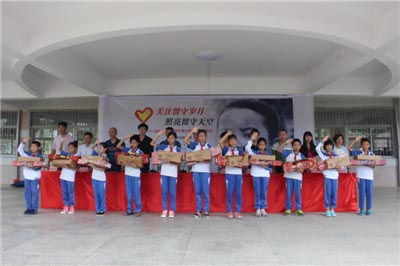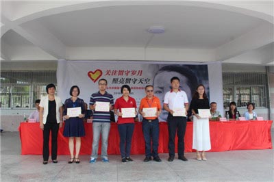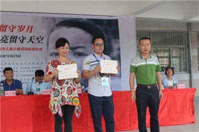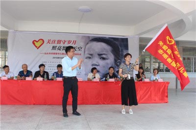 最后,团市委纪检组长、市少工委主任陈朝华向志愿者服务队授旗,标志着“关注留守岁月 照亮留守天空”公益活动正式启动。