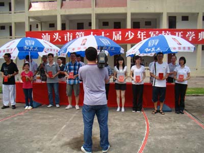 由团市委、市教育局、市直人武部、汕头市国防教育训练基地、市少工委联合举办,汕头市青少年活动中心承办的汕头市第十七届少年军校于7月10日在汕头市国防教育训练基地隆重开学,汕头警备区、团市委、市教育局、市直人武部等单位领导出席了上午第一期的开学典礼。