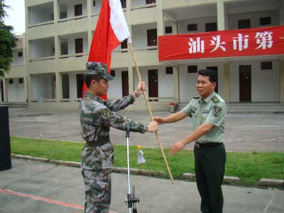 汕头警备区副参谋长詹国林中校为少年军校授旗