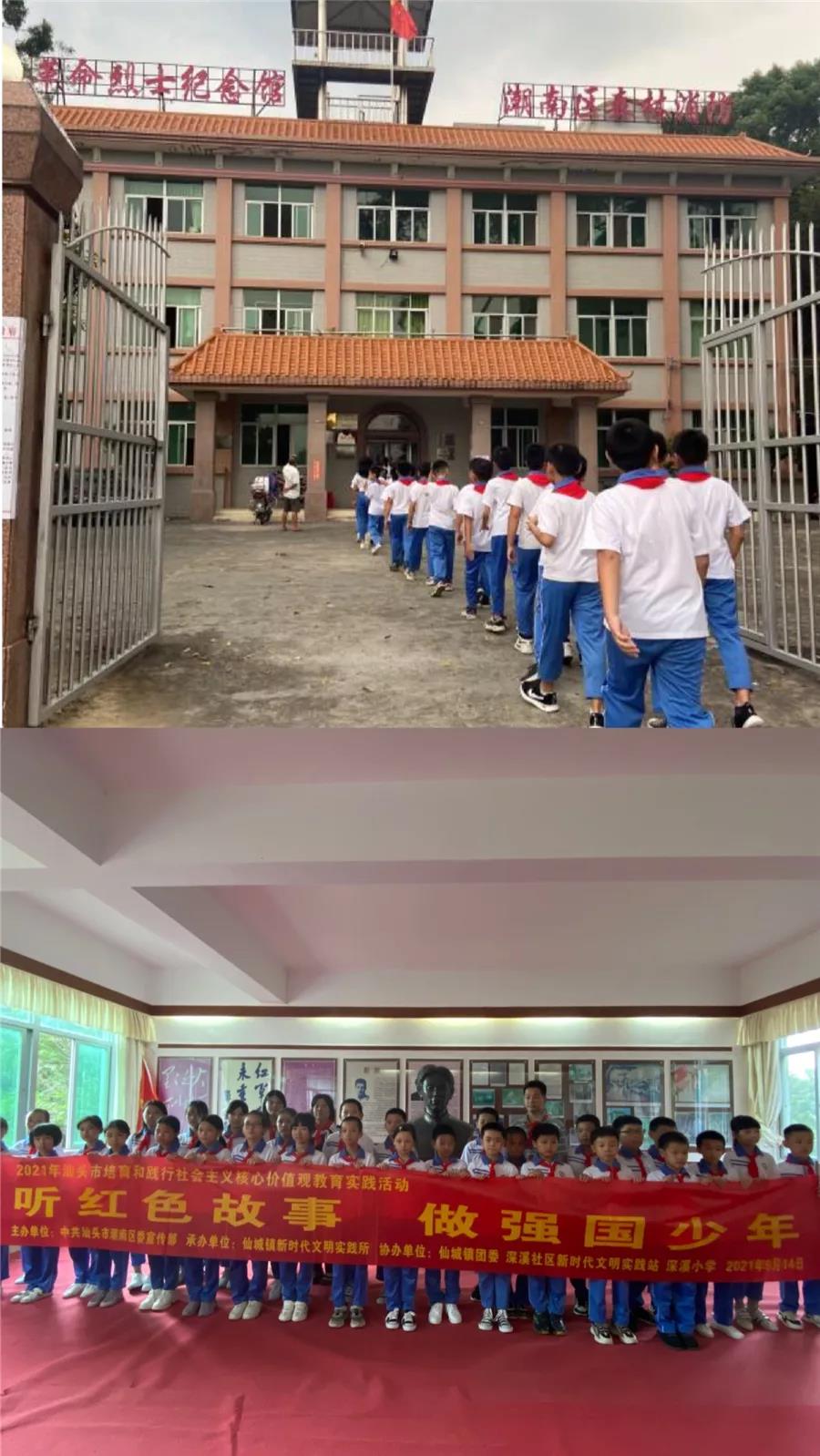 2021年9月14日,由共青团仙城镇委员会、仙城镇教育组主办,深溪社区新时代文明实践站、深溪小学少工委协办的“请党放心 强国有我”主题团日活动在汕头市爱国主义教育基地——仙城镇深溪社区革命烈士纪念碑举行。活动通过重温入团誓词,瞻仰革命烈士纪念碑,参观革命烈士纪念馆,实地接受红色革命教育。仙城镇委委员叶燕芳同志,仙城镇团组织系统成员、共青团员代表,深溪小学少先队辅导员刘镇荣老师、少先队员代表等参加了活动。活动由团镇委书记郑悦媛同志主持。