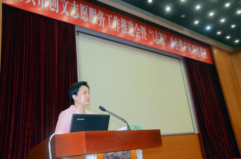 市创文办副主任杨丹阳在会上做了讲话,她高度肯定和赞扬创文一年来,志愿者在创文工作中发挥的重要作用,也指出了存在问题,并有针对性的强调了三点要求,一是要加大力度壮大志愿者队伍。在今年3月1日在全市“创文强管”工作总结推进暨创建全国文明城市提名城市冲刺动员大会上,孙光辉副书记就明确要求,今年全市所有机关事业单位都要成立志愿者队伍,开展城市各项交通志愿服务,把汕头建设成为“志愿服务之城”。下来,各地各部门要继续加大宣传力度,广泛组织发动,结合文明城市、文明村镇、文明单位等创建活动,引导广大市民群众加入志愿者队伍。要充分发动各级机关单位、企事业团体、义工组织、基层单位以及社会各界组建志愿者队伍,引导广大党员干部、企事业单位员工注册成为志愿者,不断壮大创文志愿者队伍力量。二是要加快进度补齐志愿服务工作短板。根据全国文明城市测评体系的要求,注册志愿者人数占城市建成区常住人口比例要≥10%,注册志愿者参加志愿服务活动的人数占注册志愿者总人数的比例要≥70%,注册志愿者每年人均参加志愿服务活动的时间要≥25个小时。对照这一标准,要继续加大组织工作力度,尽快补足这一短板。在志愿者的注册登记工作中,要让真正有参与志愿服务活动的志愿者进行注册登记,确保在志愿者平台上注册登记的每一位志愿者都是真正的“活跃”志愿者,而不是“僵尸”志愿者,从而规范志愿者的注册登记工作。三是要加强领导提升志愿服务工作水平。要求各地各部门进一步加强对志愿服务工作的领导,要将其作为本地本单位一项重要工作,加强总体规划、协调指导和督促检查,把党政各部门、社会各方面力量充分调动起来,形成强大工作合力。确保我市今年顺利取得全国文明城市提名资格,共同推动全市志愿服务各项工作上新台阶,以更加优异的成绩向党的十九大献礼!